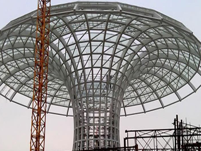 二、球形网架结构因其结构新颖,受力合理,自重轻、用钢量低等优点。如大型体育场馆球形拉萨螺栓球网架、公共场馆球形网架、电厂拉萨螺栓球网架、水泥工业球形网架、仓储物流球形网架、拉萨干煤棚工业球形网架、拉萨收费站拉萨加油站球形网架、展览中心、影剧院、商场、航站楼、候车厅、工厂拉萨车间、仓库、电视塔等球形螺栓球节点网架。国内球形网架结构主要分为:拉萨焊接球节点网架及螺栓球节点网架两种。螺栓球节点网架其构件工厂内加工量较大,现场安装便捷,适用于现场工期紧,拉萨施工条件、用电量受制约,网架形状复杂、拉萨杆件定位困难的异形结构。螺栓球节点球形网架系统基本由拉萨杆件、螺栓球、支撑支座等组成。按照节点形式可分为交叉拉萨桁架体系、四角锥体系、三角锥体系等。支撑方式多为固定支座支撑。对于大面积、大跨度及有特殊受力或伸缩要求的网架结构可采用橡胶支座、滑移支座、球铰支座等支撑形式,以满足结构自身的受力稳定、均衡,便于内力释放等设计要求。
